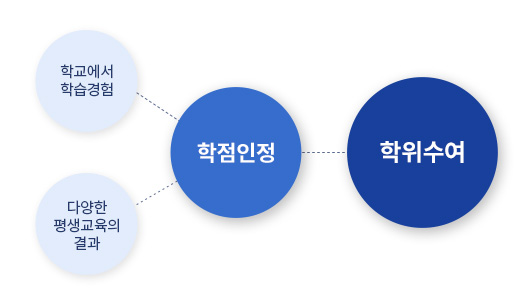 「학점인정 등에 관한 법률」에 의거 학교 뿐만 아니라 학교 밖에서 이루어지는 다양한 형태의 학습 및 자격을 학점으로 인정받을 수 있도록 하고, 학점이 누적되어 일정 기준을 충족하면 학위취득을 가능하게 함으로써 궁극적으로 열린 학습사회, 평생학습사회를 구현하기 위한 제도입니다.